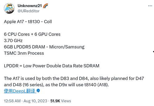 总的来说,苹果A17在性能、图形处理、AI能力、散热性能和续航能力等方面都有显著提升。这款芯片的问世,无疑将为苹果手机带来更加出色的使用体验。虽然目前苹果A17的具体发布时间和价格尚未公布,但相信这款芯片一定会成为市场上的一大亮点。